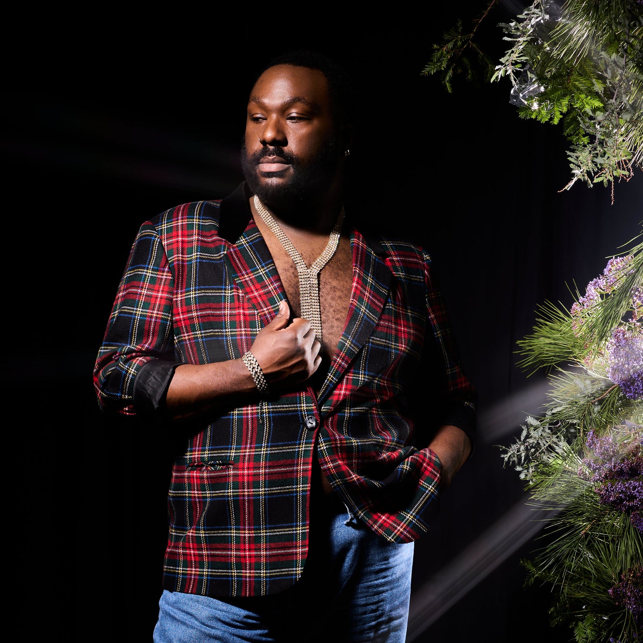 Wool blend blazer perfect for the holiday season. One front button closure, velvet collar and two front slash pockets.